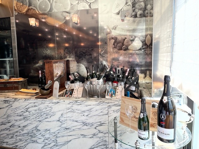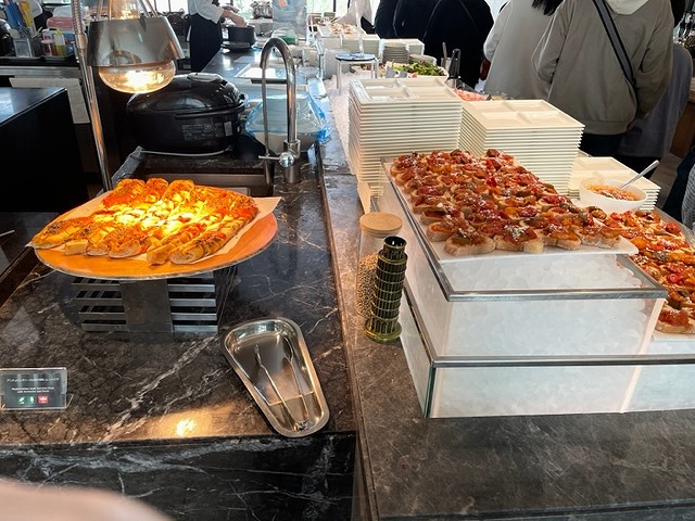 おいしそうなお料理が並んでいるのを眺めながら、席まで案内されました。